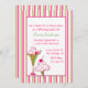 O convite de aniversário da menina doce feito com um rosa, um fundo listrado do verde, e o branco, e uma área de texto branca mergulhada, sobre o fundo. Os gráficos dos deleites bonito de um rosa, do verde, e os brancos do sorvete decoram o inferior esquerdo do convite. O texto no rosa e no verde é inteiramente customizável para suas necessidades do partido. Grande convite à festa de aniversário de alguma menina.
