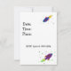 Um foguete espacial brilhante que sopra para a lua. Estrelas no fundo. Personalize com todas as informações de aniversário do seu filho conforme desejado.