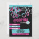 Celebre sua estrela adolescente com este convite temático da festa de dança. Personalize com os detalhes do seu partido. Preto, Azul e Rosa.