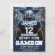 DOWNLOAD DIGITAL DISPONÍVEL. Prepare-se para começar uma festa de aniversário épica com este convite temático do time de futebol de Dallas! Perfeito para os fãs de Cowboy que sangram Azul e vivem a energia do dia do jogo, este convite apresenta um jogador de futebol ousado em um uniforme azul e prata impressionante, pronto para marcar um touchdown na sua celebração. Ideal para festas estilo tailgate ou reuniões para assistir ao jogo, este design captura o coração dos fãs de Dallas. Personalize para qualquer idade e faça do seu aniversário uma jogada vencedora!
