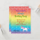 Convite de aniversário com unicórnio e fundo do coração do arco-íris