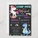 Chegue para um aniversário mágico! Convite de aniversário do Unicorn e do Dinossauro Dinossauro e convite de unicórnio Convite de aniversário mágico. Convide seus amigos com este convite para o tema mágico de aquarela fofo! Este convite de aniversário de dino e unicórnio apresenta um pequeno unicórnio feliz, curioso dinossauro, algumas flores e arco-íris ao redor. Simplesmente edite este menu de personalização fácil de usar modelo para torná-lo especial.