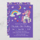 Este convite de aniversário unicórnio faz parte de um conjunto correspondente de acessórios de festa de aniversário. Sua garotinha vai gostar de cada momento mágico de seu dia especial. Esta design apresenta as cores do arco-íris com especial ênfase no rosa e roxo. Você encontrará um unicórnio mágico e balões, juntamente com fontes fáceis de ler, e muito espaço para adicionar todas as suas informações exclusivas. Para qualquer necessidade especial de design, fique à vontade para entrar em contato com o designer, enviando um email para choosehappystudio@yahoo.com