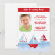 Este convite de aniversário branco e azul vermelho do barco de vela é perfeito para toda a festa de aniversário. Os barcos bonitos e uma foto de sua criança convidam seus convidados no estilo! Personalizar este cartão é fácil fazer, apenas muda os detalhes do partido e você é feito! Estúdios do cacau