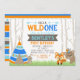 Convite de Aniversário do Wild One Blue Teepee Woodland. Apresentando uma raposa florestal, urso, coelho e veado em Azul, Azul Bebê, Laranja e Castanho. Clipart por Impressões de papel de pixel