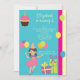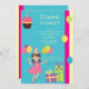 Enfie sua festa de aniversário da menina fora do direito com nosso convite de aniversário bonito super do party girl ajustado em um rosa moderno, em um azul de turquesa & em um fundo amarelo. Nosso convite do aniversário das meninas do doce caracteriza uma menina do aniversário que veste um chapéu do partido que guardara um grupo de balões festivos com um cupcake do aniversário & os presentes de aniversário. Parte traseira de coordenação bonito do convite. Convite perfeito para uma festa de aniversário da menina. Apenas personalize com sua informação e você é todo ajusta-se para ir! Artigos de harmonização que incluem selos postais do aniversário, etiquetas do favor, obrigado carda-o & agradecem-n que a as etiquetas estão igualmente disponíveis em nossa loja. O design adicional está disponível em nossa loja no design do ©Riefka de www.celebrateitinvites.com