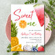 Este convite adorável “Doce Um” apresenta frutas vibrantes em aquarela, como abacaxis, melancias, laranjas e mirtilos – perfeito para uma festa tropical ou com tema de verão. Com fontes divertidas e cores alegres, foi projetado para tornar a celebração de um marco da sua bebê ainda mais doce!