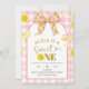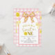 Convite de Aniversário de 1 Ano Coquete Laço Limão Rosa e Amarelo, Convite de Aniversário de Menina, Plaid Editável para Crianças