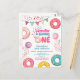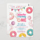 Este convite de aniversário doce apresenta meus donuts desenhados à mão em cores vibrantes com confetes coloridos.
