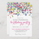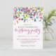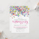 Este convite de aniversário brilhante, moderno caracteriza uma disposição colorida de confetes. Aperfeiçoe para todo o tema da idade ou do partido.