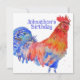 Convite de Aniversário Feliz Galo Vermelho Aquarela. Criado a partir da minha arte original.