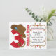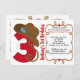 Vire-se e vá em frente. Estamos comemorando um aniversário de 3 anos! Este convite é para um garoto fazer 3 anos. Tem um grande número 3 com um padrão listrado vermelho. Há um chapéu marrom de cowboy sentado em cima do número. Tem uma banda vermelha ao seu redor com cordas penduradas. O lado direito está rodando por aí, onde você se personaliza com suas informações de festa. Veja os muitos outros designs que temos em nossa loja. © Ilustrações JW