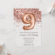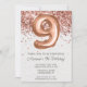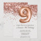 Convite de aniversário Dourado 9º rosa e rosa de ouro elegante 9º convite de aniversário para uma menina de 9 anos com script moderno e balões de folha divertida com papel de textura impresso.