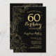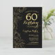 Convite de aniversário Dourado Floral 60º preto. Design minimalista moderno com desenhos botânicos em destaque, folha de ouro falsa e letra de script de tipografia. Simples trendy convida cartão perfeito para uma festa de na moda. Pode ser personalizado para qualquer idade. Impressos convites Zazzle ou modelo de impressão digital instantânea para download.