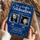 Entre no mundo da elegância com nossos convites de festa de aniversário conjunta. Com um deslumbrante fundo azul personalizável para a sua cor preferida, fotos duplas, um spray festivo de glitter de confete dourado e um modelo contemporâneo de dupla celebração, esses convites encapsulam perfeitamente o espírito de uma celebração de aniversário dupla. Fáceis de personalizar, eles representam uma interseção única de estilo e conveniência difícil de superar.