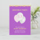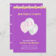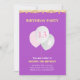 Placa de Convite de aniversário Elegante. O cartão de aniversário tem três balões sobre fundo ultravioleta. Há um padrão estelar no verso. O texto está pronto para ser personalizado.