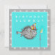 Convites de festa de aniversário criativa, com um peixe cartoon soprando uma vela de aniversário.