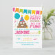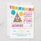 Divirta-se e não seja um soldado de festas com este engraçado convite de aniversário! Apresenta poo emoji com balões de aniversário coloridos, confetti e bunting.