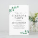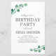 Orçamento Personalize este Estilo de Primavera de Folhagem Eucalyptus Modern Watercolor Greenery Eucalyptus Qualquer Convite de aniversário de Idade sobre fundo branco com sua mensagem e detalhes. Este convite para na moda inclui uma folhagem botânica elegante e moderna, com tipografia de na moda, é perfeita para as celebrações Doce 16, 1rua, 21ruas, 30, 40º, 50º, 60º, 70, Festa de aniversário