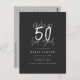 Convite de aniversário fazendo 50 parecer bom. Design monocromático com texto em letra cursiva moderna. Parte de uma coleção.