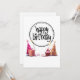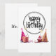 Este convite exibe as palavras "Feliz Aniversário" em uma fonte de impressão única com letras pretas dentro de um design circular com adesivos de festa de aniversário neste tema e estilo de aniversário. Impresso em um papel clássico e versátil com 17,5 pt de espessura e acabamento fosco não revestido com textura de casca de ovo, feito e impresso nos EUA com "É uma Festa" impresso no verso.