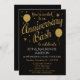 Este divertido convite de festa de aniversário de casamento apresenta fundo preto com balões e estrelas glitter dourados falsos. Tem um charme elegante e caprichoso com uma borda estilosa. O casal de aniversariantes vai adorar este convite estiloso, assim como seus convidados. Para 5º, 10º, 15º, 20º, 25º, 30º, 35º, 40º, 45º, 50º ou qualquer um entre eles!