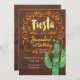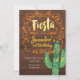 Fiesta Convite de aniversário mexicana com fundo de madeira e suculento.