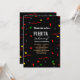 Convite de Aniversário Fiesta preto Quadro de Giz Mexicano para menino e para meninas e para homens e mulheres com cores rosa e verde e amarelo e azul e vermelho e laranja e branco ótimo design de convites para aniversários e eventos especiais