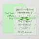 convite de festas brilhante em um design verde floral, com uma fita doce e sotaque de arco. Personalize o texto nos lados frontal e inverso desta placa para personalizá-lo.