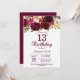 Convite de aniversário Floral de 13 para Garota. Burgundy Red Festa de aniversário Convide. Flor Floral de Aquarela Burgundia. 13 16º 18º 30 21rua 20 40º 50º 60º 70 80 100º, qualquer idade. Digital Imprimível. Para mais personalização, clique no botão "Personalizar" e use nossa ferramenta de design para modificar este modelo.