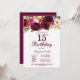 Convite de aniversário de 15 Floral para Garota. Festa de aniversário Vermelha Burgundy Convida. Flor Floral de Aquarela. 13 16º 30 18º 20 21rua 40º 50º 90 de 60º 70 de 100º 80 de qualquer idade. Digital Imprimível. Para mais personalização, clique no botão "Personalizar" e use a ferramenta design para modificar este modelo.