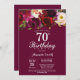 Convite de aniversário Floral da Burgundy para mulheres. Burgundy Red Festa de aniversário Convide. Flor Floral de Aquarela Burgundia. 13 15 de 16º 18º 20 21rua 30 de 40º 50º 80 de 60º 70 de 100º. Para mais personalização, clique no botão "Personalizar" e use nossa ferramenta de design para modificar este modelo.