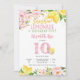 Ilumine sua celebração com este alegre convite de aniversário floral e de limão. Com destaque para limões aquarela e flores cor-de-rosa, este design traz uma vibe fresca e de verão perfeita para aniversários de crianças ou reuniões de verão. O layout divertido destaca os detalhes do seu evento enquanto cria um souvenir elegante para os convidados. Personalize facilmente para combinar com o tema da sua festa e faça da sua celebração algo inesquecível.
