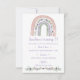 Bonito arco-íris pastel e convite de aniversário floral rosa e roxo. Personalize com suas próprias informações!