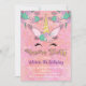 Bonito como pode ser o Convite de aniversário do Unicórnio. As características falham fontes de folha de ouro, acentuam e recuam com flores cor-de-rosa, púrpura e rosa.