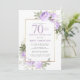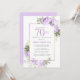 Honra uma mulher especial com este Convite de aniversário elegante e feminina. 70 é escrito em texto roxo grande. A comemoração de aniversário segue. O nome do convidado é também em letras de maiúsculas roxas. O resto do texto é cinza de pomba mole. Os detalhes da comemoração de 70 são cercados por uma moldura de ouro cônico que é decorada com rosas roxas e folhas verdes de sábio. Enquanto é um design tradicional, a folhagem botânica aberta e arejada e o texto lhe dão uma vibração contemporânea. O convite de volta é um roxo suave. Infelizmente, os 70 algarismos não são editáveis. Se precisares de mais um ano, terei todo o prazer em fazer um design personalizado para ti.