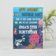 Junte-se à celebração dos 5 anos de Liam! Este convite 'Submarino' apresenta três adoráveis criaturas marinhas em cartoon: um polvo alegre, um tubarão azul e uma medusa rosa sonhadora. Contra um mundo submarino mágico de recifes de coral e bolhas, este convite personalizável é perfeito para uma festa com tema oceânico. Texto totalmente editável para torná-lo único para o dia especial do seu pequeno!