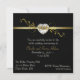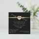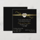 Convite de aniversário de casamento de cinquenta anos elegante feito em formato quadrado com tons de preto e dourado. Fundo preto, com uma faixa elegante em tom dourado com floreios. Gráficos de uma área em forma de diamante em coração repousam sobre a faixa e têm o texto "50º". Personalize todo o texto para atender às necessidades da sua festa. Um convite de aparência muito elegante e formal. Este formato quadrado pode ter um custo maior de envio, verifique em seu correio local as taxas para envelopes de tamanho incomum.