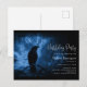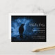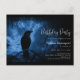 Convite de aniversário com uma imagem de um corvo preto à noite empoleirado em um galho de árvore com runas acima que diz "corvo preto".