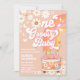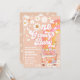 Celebre o dia especial do seu pequeno com este convite de aniversário retrô e groovy! Com um fundo cor de pêssego com margaridas, borboletas, estrelas e um arco-íris vibrante, este design captura a vibe divertida e livre dos anos 60. Uma van flower-power decorada com sinais de paz adiciona um toque lúdico, tornando-o perfeito para uma festa temática hippie, boho ou arco-íris. Personalize facilmente para o aniversário do seu filho e defina o tom para uma celebração cheia de paz, amor e alegria.