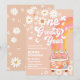 Celebre o primeiro aniversário do seu pequeno com este convite inspirado no retro! Com um fundo pêssego com margaridas, estrelas, borboletas e um arco-íris, além de uma van com detalhes de signo da paz, ele define o clima hippie perfeito. A tipografia lúdica e as cores vibrantes tornam-no ideal para um tema de festa nostálgico e divertido. Uma maneira encantadora de convidar os convidados para paz, amor e alegria.