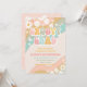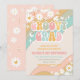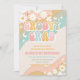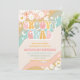 Celebre com estilo com este convite de aniversário retrô groovy apresentando listras pastéis onduladas, margaridas divertidas, estrelas, corações e raios. Perfeito para um primeiro aniversário ou qualquer festa divertida, este design vibrante captura paz, amor e charme retrô. Personalize com os detalhes do seu evento para criar um souvenir único que os convidados adorarão. Ideal para celebrações temáticas retrô, festas hippies ou aniversários infantis caprichosos.