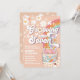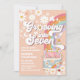 Celebre o dia especial do seu filho com este convite de aniversário retrô, apresentando um fundo cor de pêssego, margaridas divertidas, borboletas, estrelas e um arco-íris. Uma colorida van hippie decorada com sinais de paz adiciona um clima divertido dos anos 70, tornando-a perfeita para crianças que amam temas groovy. Este convite personalizável é ideal para uma festa de 7º aniversário, misturando nostalgia com design moderno para criar um item exclusivo. Personalize com o nome da criança, detalhes da festa e informações de RSVP para torná-lo verdadeiramente único.