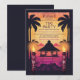 Este convite de festa Tiki transporta você para um oásis praiano, banhado pelo brilho suave de um pôr do sol vermelho e roxo. Uma pitoresca cabana tiki aninha-se entre palmeiras altas e farfalhantes. A praia arenosa imaculada, que se estende ao longe, promete uma celebração animada. As cores mescladas do céu do crepúsculo evocam uma sensação de tranquilidade tropical, preparando o cenário para uma vibrante Festa Tiki.