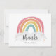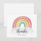 Convite de Aniversário Infantil Arco-íris Colorido apresenta um arco-íris desenhado à mão em tons de rosa, laranja, amarelo e turquesa e um nome em caligrafia moderna. O verso está em branco para sua mensagem manuscrita.
