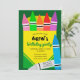 Traga cor ousada e charme divertido para a celebração do seu filho com este Convite de Aniversário Caixa de Giz Colorida! Com uma ilustração vibrante de giz de cera superdimensionados em tons de arco-íris, rosa, verde, laranja, vermelho, roxo e azul, este design captura a aparência alegre de uma caixa clássica de giz de cera. O layout inclui um painel central amarelo brilhante para detalhes personalizáveis do evento, fontes desenhadas à mão divertidas para o nome da criança e cabeçalho "festa de aniversário", e gráficos adicionais de giz de cera sobrepostos na parte inferior para um toque artístico e divertido.