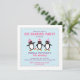 Um trio pequeno bonito do skate de gelo dos pinguins em uma lagoa minúscula contra um fundo nevado do azul gelado, convidando seus convidados a uma festa de aniversário temático do patinagem no gelo do divertimento. Com os chapéus de lã bonitos em cor-de-rosa e em roxo, este design é perfeito para toda a menina do aniversário!