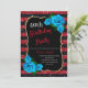 Convite de festa de aniversário elegante com listras vermelhas e pretas e rosas azuis em brilho para mulheres de qualquer idade. A idade pode ser alterada para qualquer idade. O texto pode ser alterado para qualquer coisa para se adequar ao seu evento. Fontes, cor da fonte e texto são completamente personalizáveis! O formato e tipo de papel podem ser personalizados para se adequar ao seu orçamento e gosto!