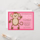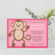 Convide seus amigos para a próxima festa de aniversário com este convite de aniversário de macacos personalizável. Tem uma linda macaca com uma flor rosa no cabelo.