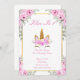 Convite de aniversário MÁGICO COM DESIGN FLORAL DE PINCO E UM UNICORN.